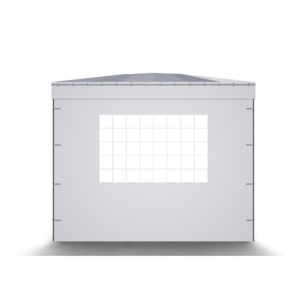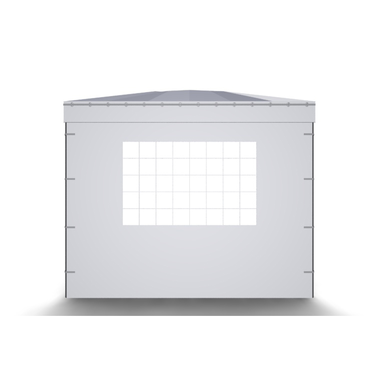 Verschiebbare Seitenwand mit Fenster Typ BASE mit unvernieteten Bändern.